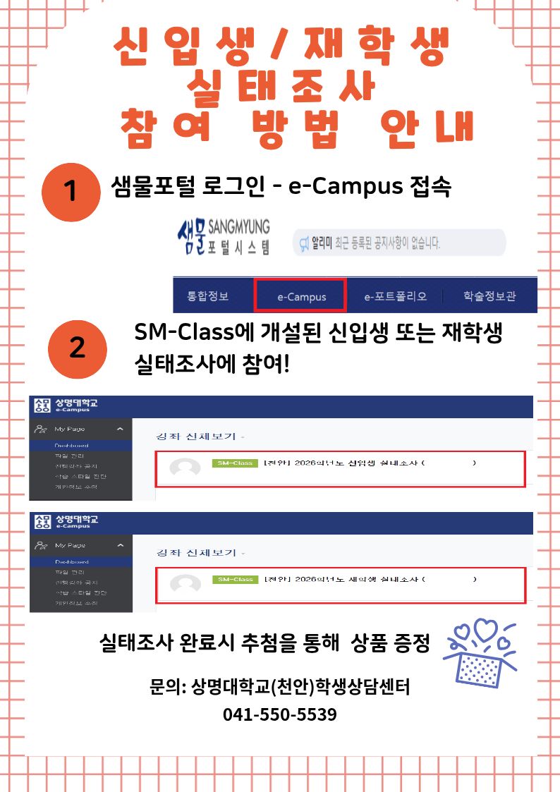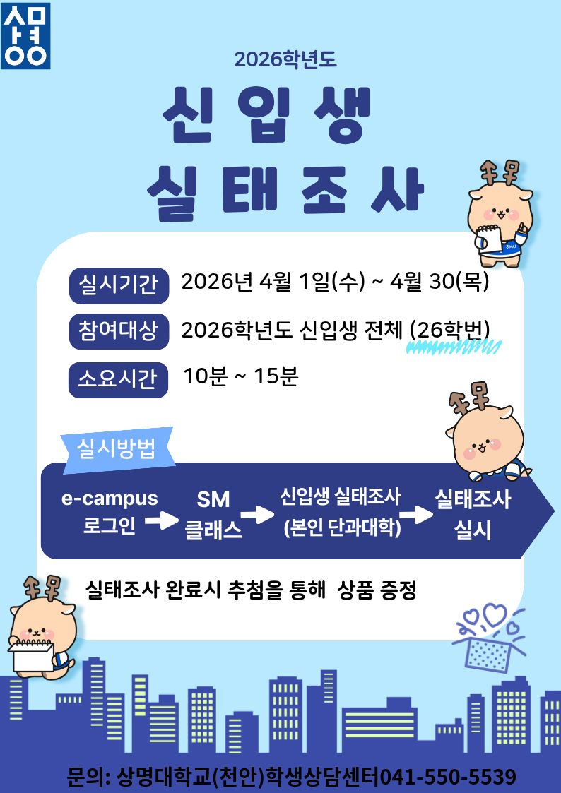 - 2026학년도 신입생 / 재학생 실태조사 및 신입생 적응역량검사 안내